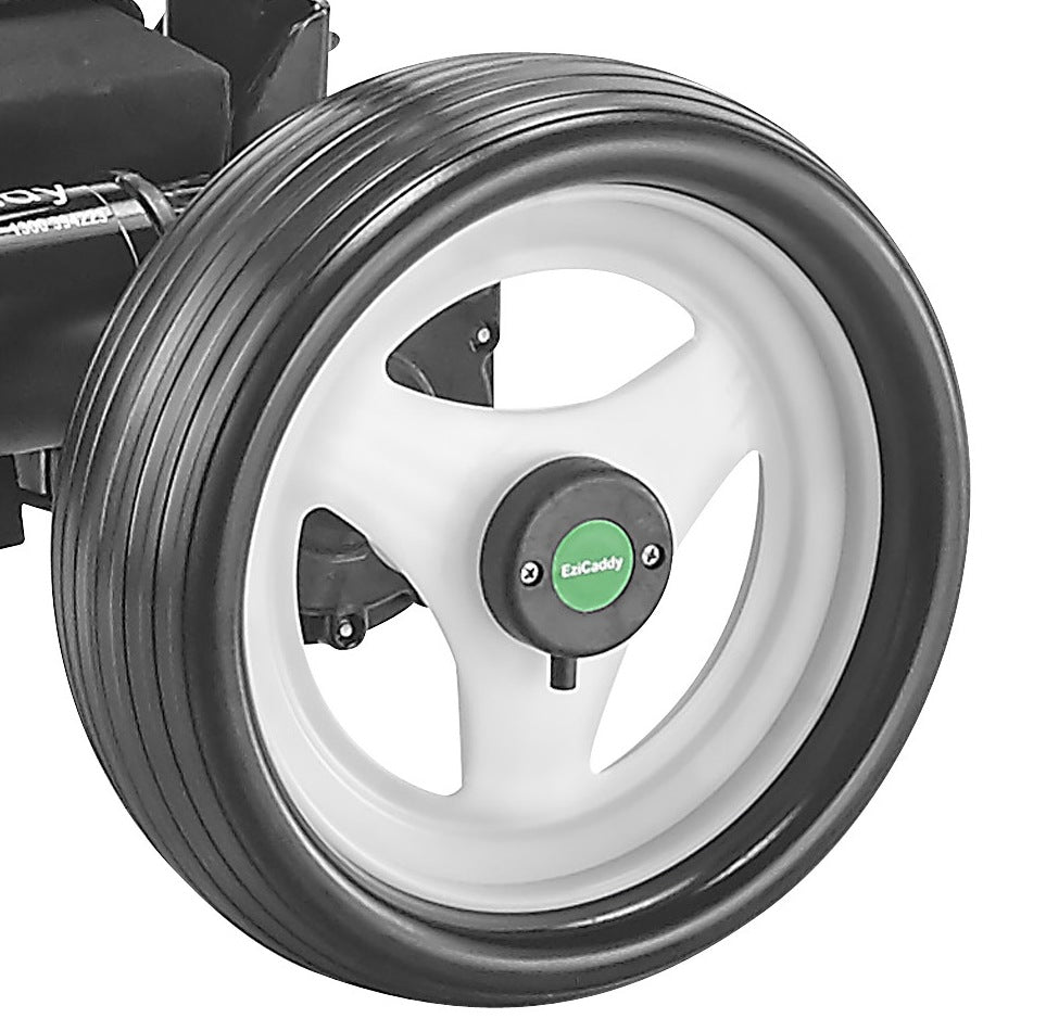 Ezicaddy LH EVA Rear Wheel Includes Left Hand Clutch in Wheel New EVA Tyre for smoother ride EVA provides more durability Left Hand when behind Buggy Left Hand Wheel attached on Motor Side Will fit previous models Links and Remote Advantage Not for Motor Brake Model